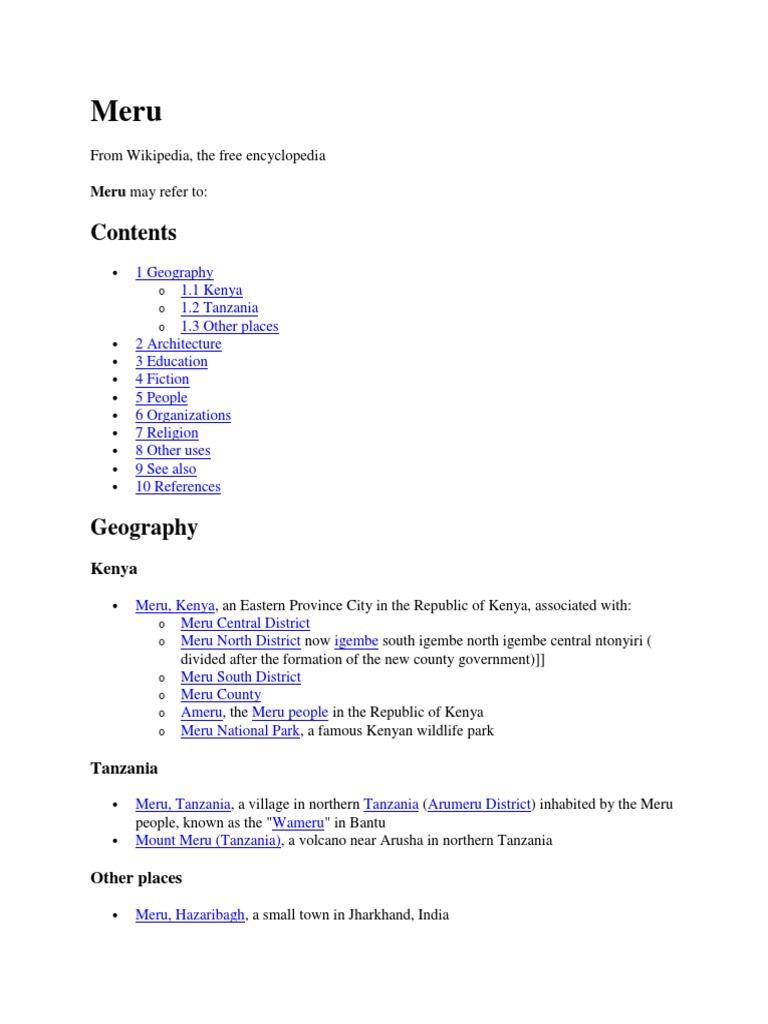 Meru, Tanzania, a village in northern Tanzania (Arumeru District) inhabited by the Meru