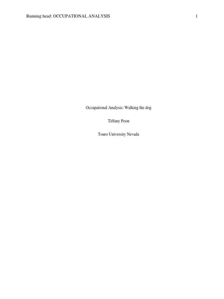 Running head: OCCUPATIONAL ANALYSIS 1 1