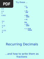 Recurring decimals: those which do not 'stop' at a given number of decimal places but which may have a repeating digit