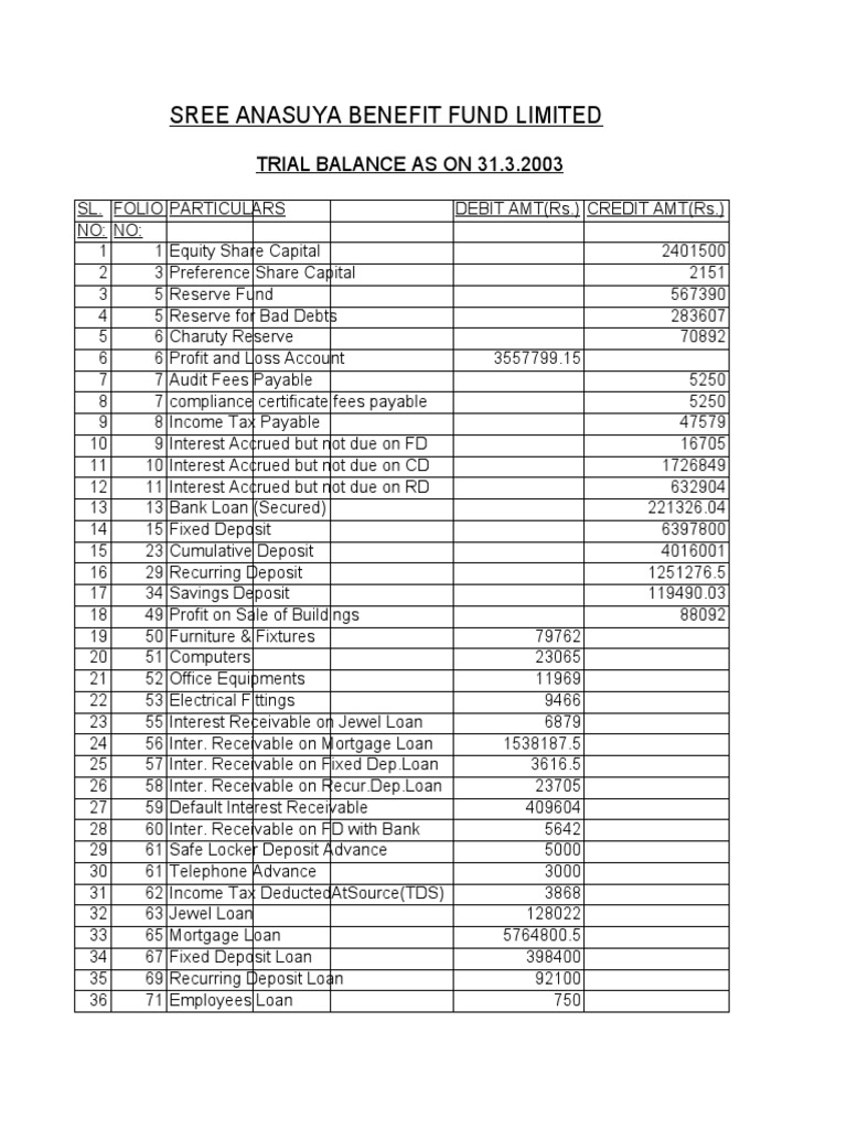 SL. FOLIO PARTICULARS DEBIT AMT(Rs.) CREDIT AMT(Rs.)