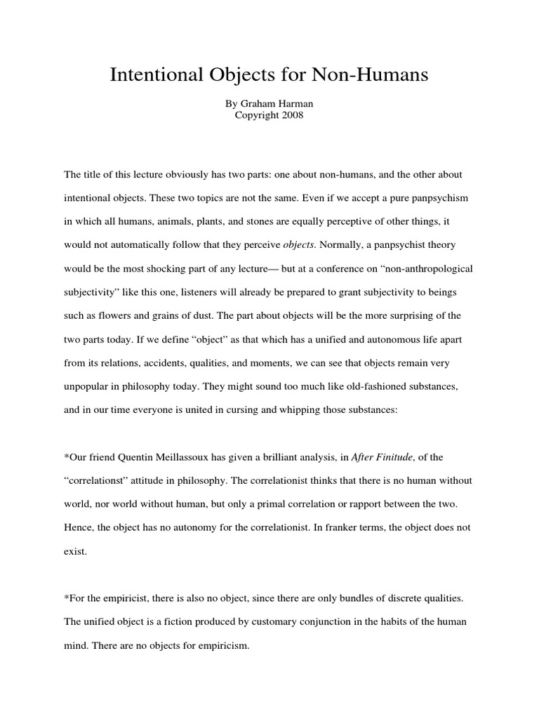 Intentional Objects for Non-Humans