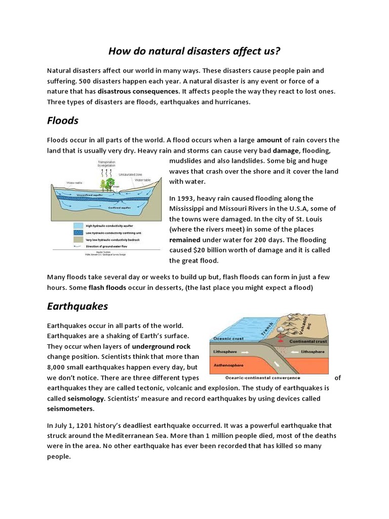 Natural disasters affect our world in many ways. These disasters cause people pain and
