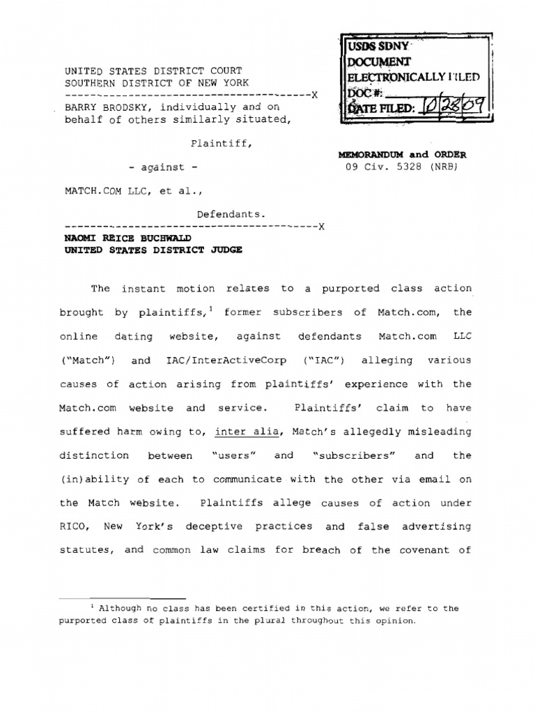 brought by plaintiffs,’ former subscribers of Match.com, the