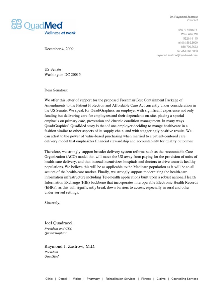 QuadMed Endorses Freshman Health Care Amendment