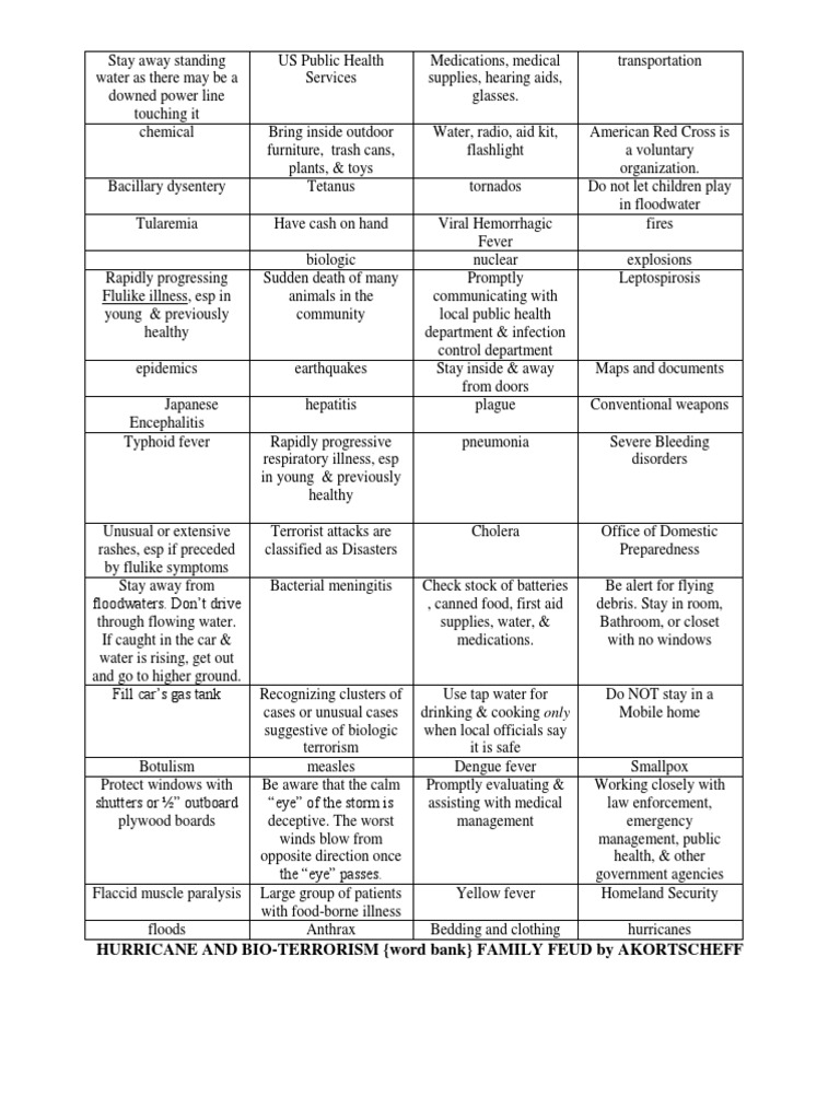 HURRICANE AND BIO-TERRORISM {word bank} FAMILY FEUD by AKORTSCHEFF