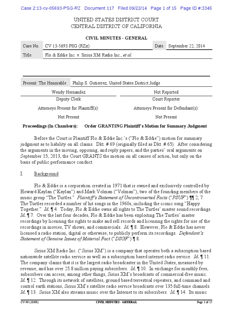 Before the Court is Plaintiff Flo & Eddie Inc.s (Flo & Eddie) motion for summary