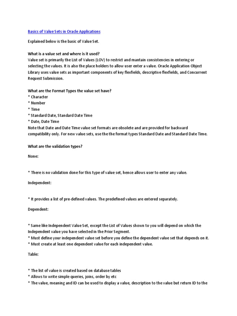 Library uses value sets as important components of key flexfields, descriptive flexfields, and Concurrent