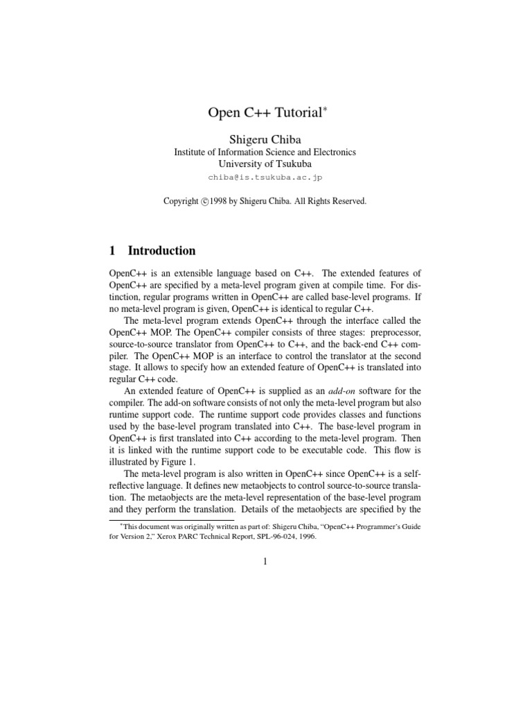 This document was originally written as part of: Shigeru Chiba, “OpenC++ Programmer’s Guide