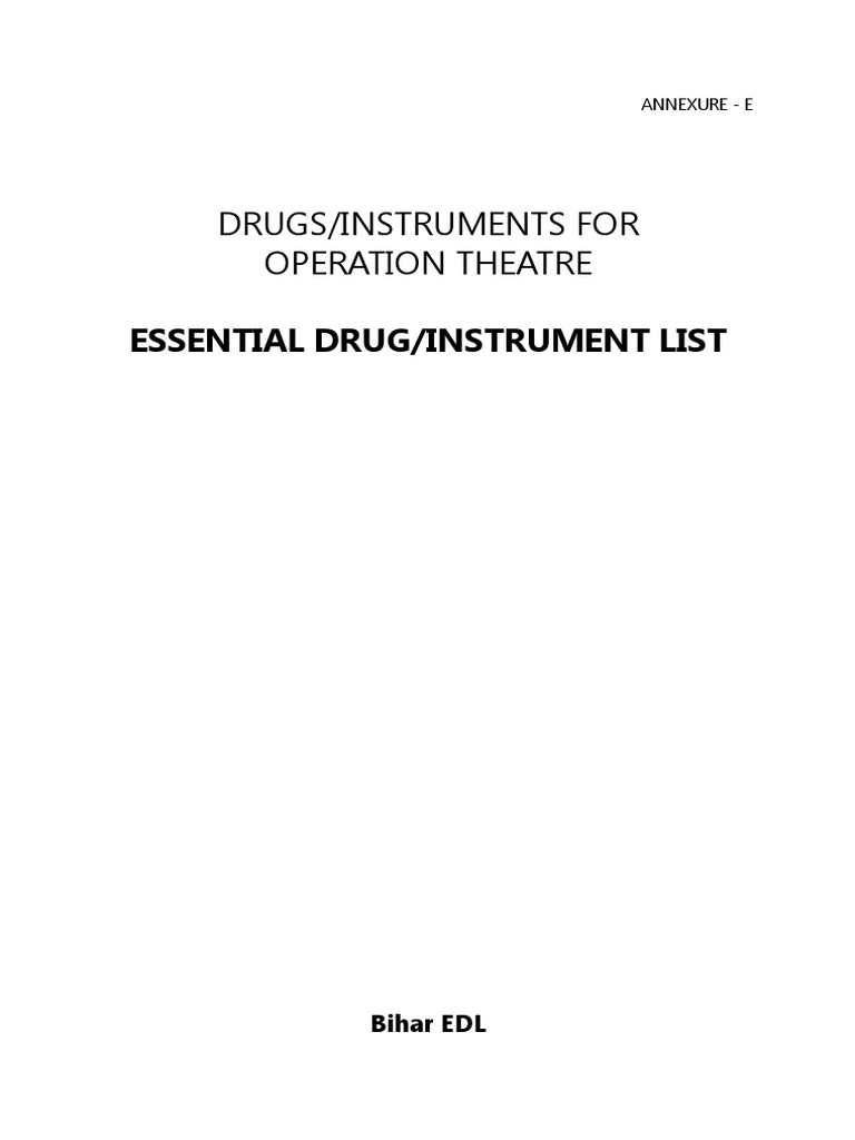 LIST OF ESSENTIAL DRUGS, BIHAR : DRUGS/INSTRUMENTS FOR OPERATION THEATRE, 2011