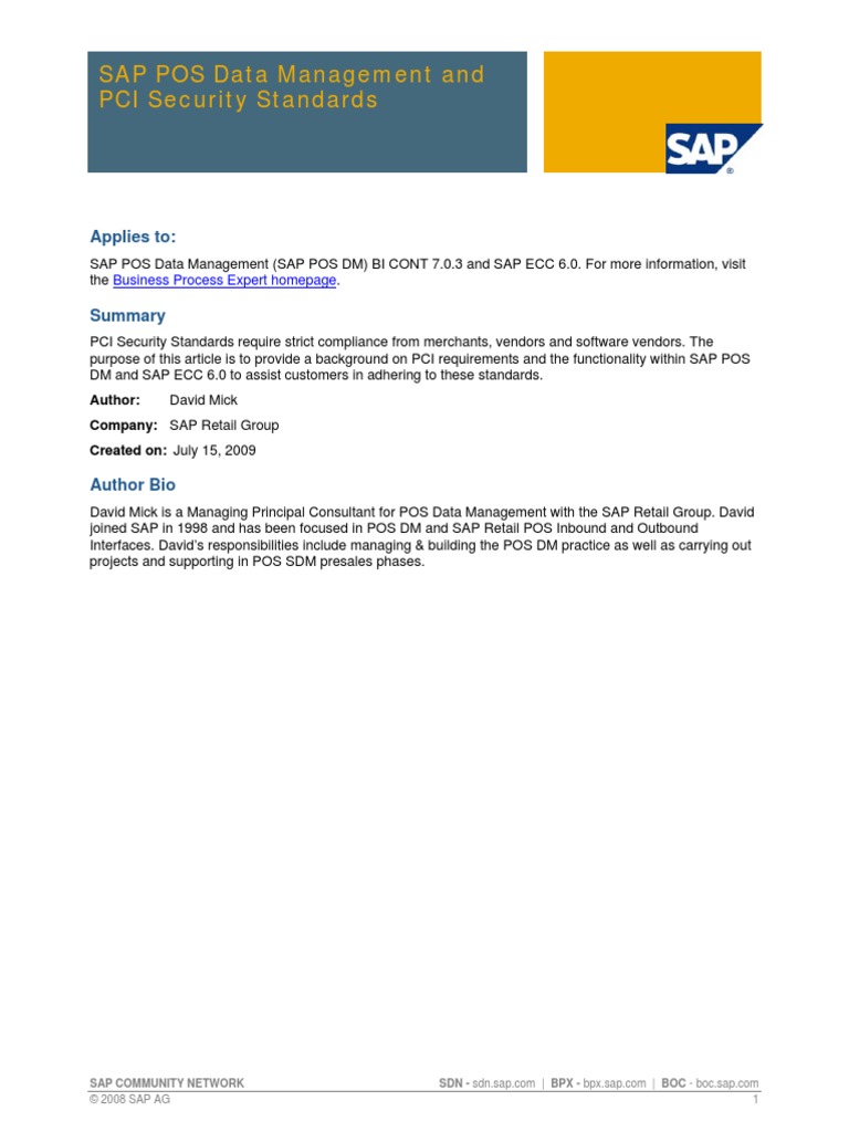 SAP POS Data Management (SAP POS DM) BI CONT 7.0.3 and SAP ECC 6.0. For more information, visit