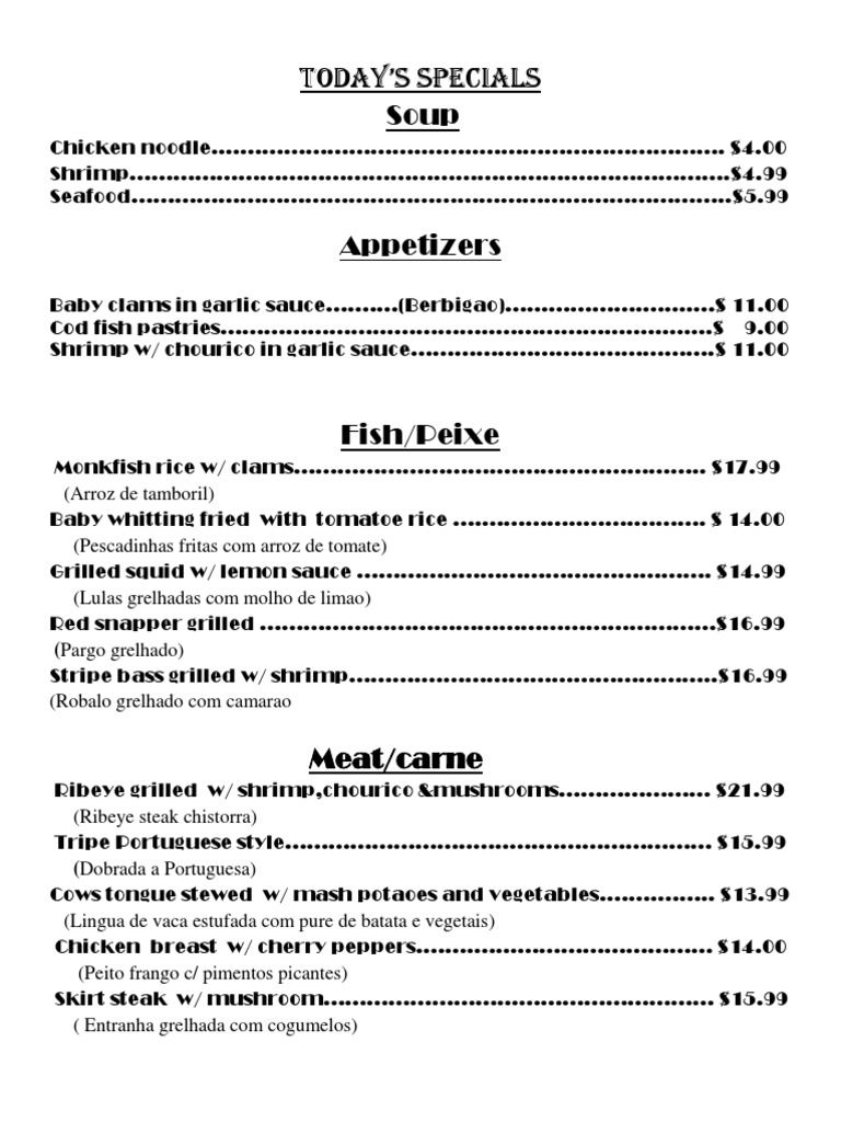 Todays specials