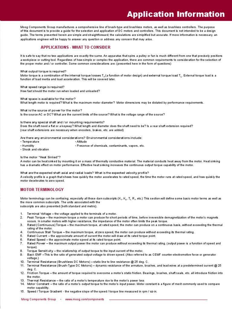 of this document is to provide a guide for the selection and application of DC motors and controllers. This document is not intended to be a design