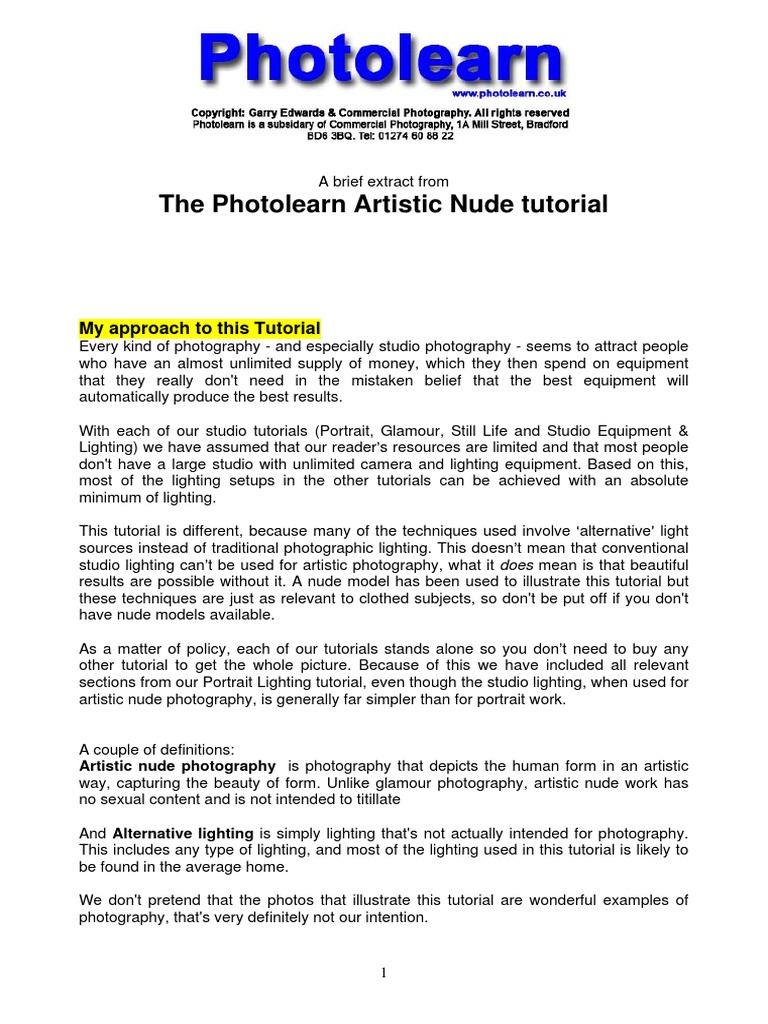 results are possible without it. A nude model has been used to illustrate this tutorial but