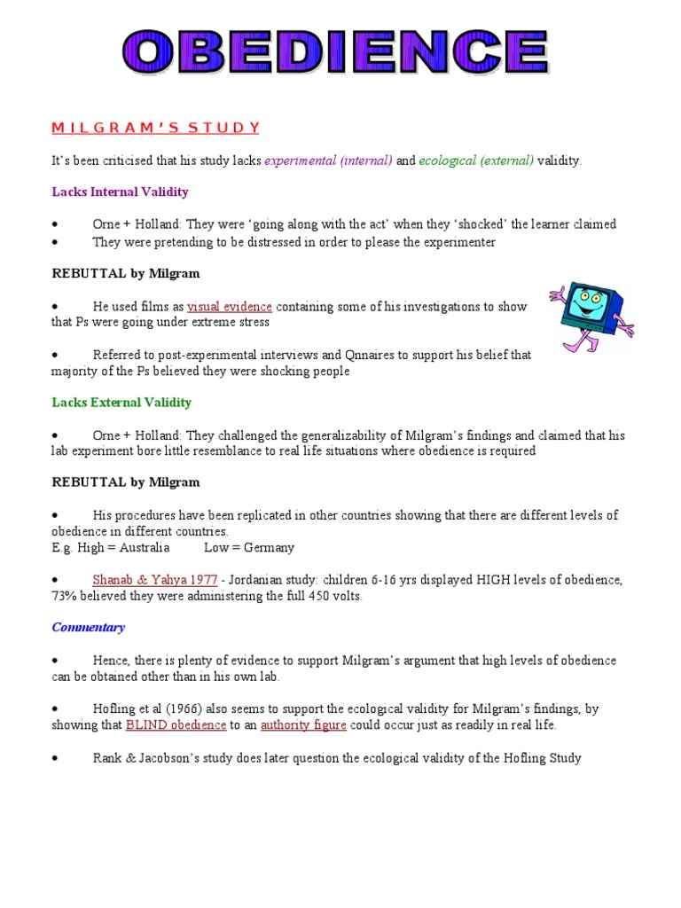 • Orne + Holland: They challenged the generalizability of Milgram’s findings and claimed that his