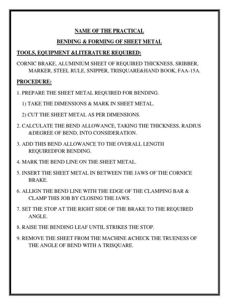 1. PREPARE THE SHEET METAL REQUIRED FOR BENDING.