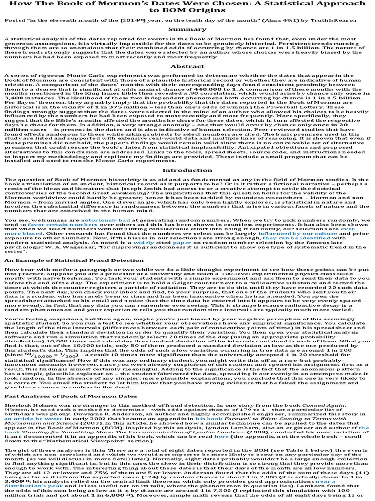 How The Book of Mormon's Dates Were Chosen: A Statistical Approach To BOM Origins