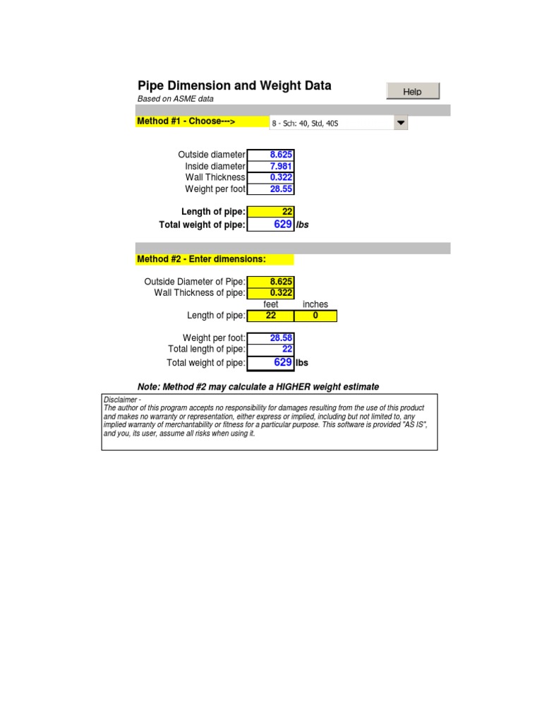 Pipe Dimension and Weight Data