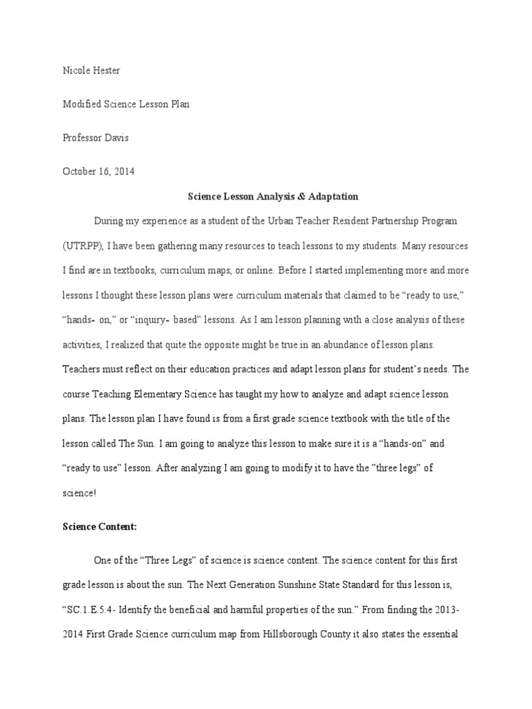Science Lesson Analysis & Adaptation
