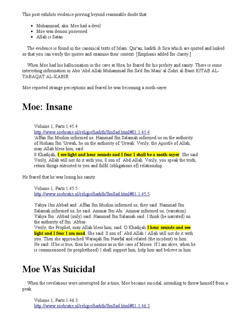 Updated version of Islam Is Satankic with additional evidence. Evidence is linked to source texts where possible.