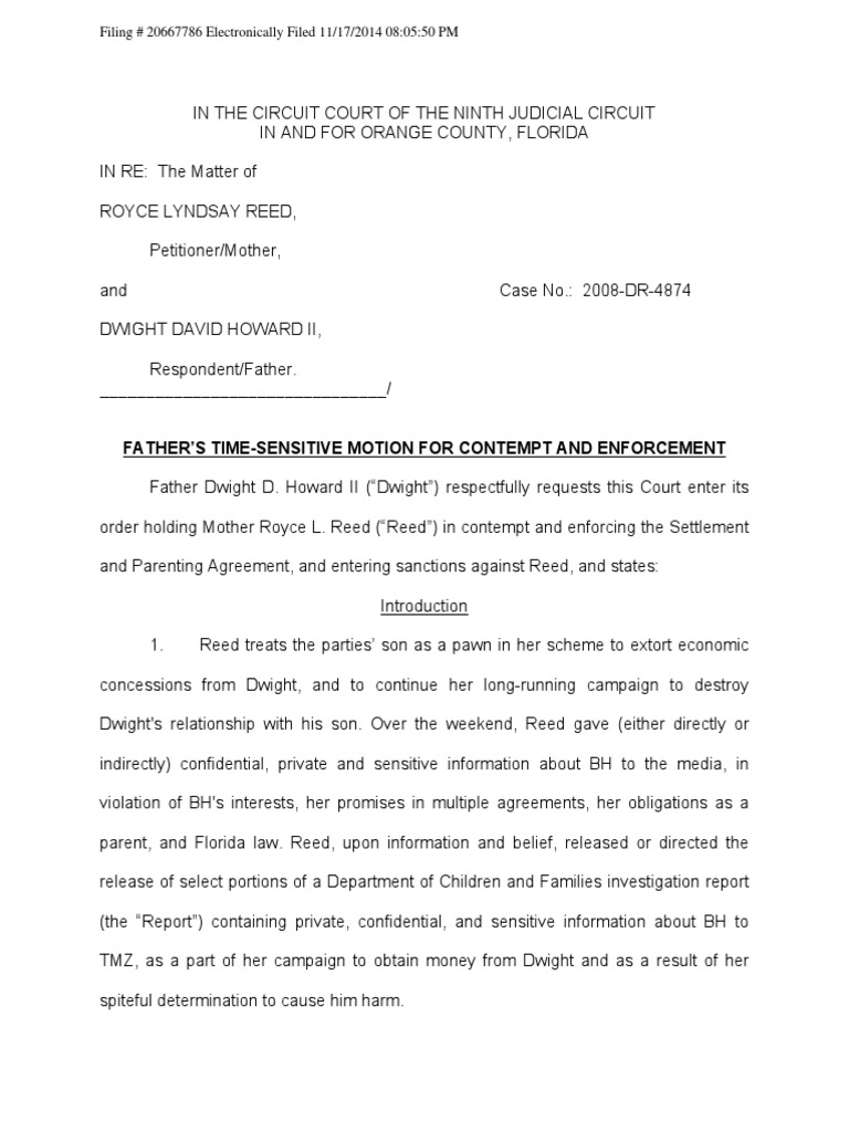 WHEREFORE Dwight D. Howard II respectfully requests this Court enter its