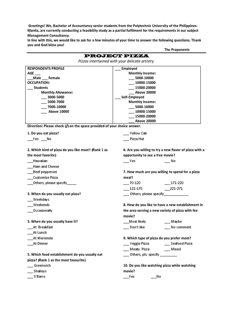 We, Bachelor of Accountancy senior students from the Polytechnic University of the PhilippinesManila, are currently conducting a feasibility study as a partial fulfilment for the requirements in our subject