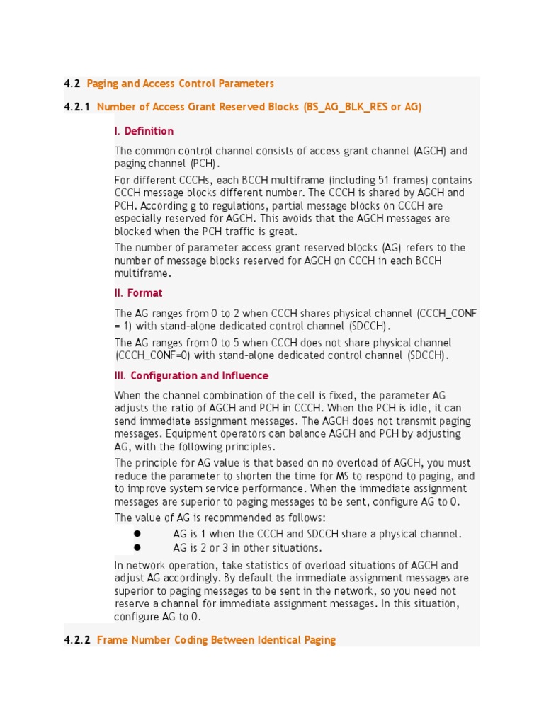 2 Paging and Access Control Parameters