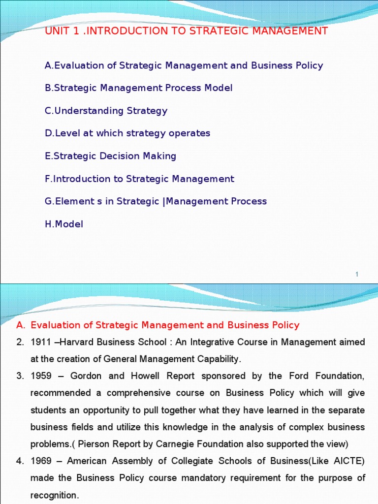 F.Introduction to Strategic Management