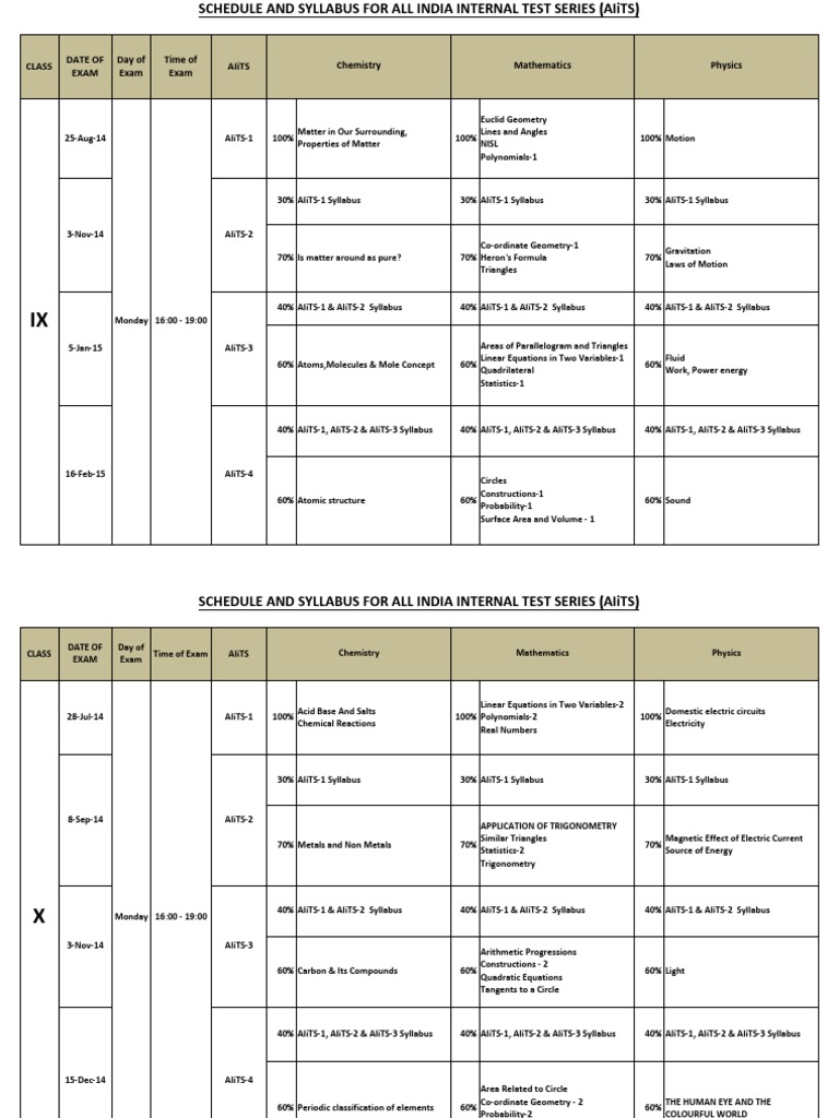 SCHEDULE AND SYLLABUS FOR ALL INDIA INTERNAL TEST SERIES (AIiTS)