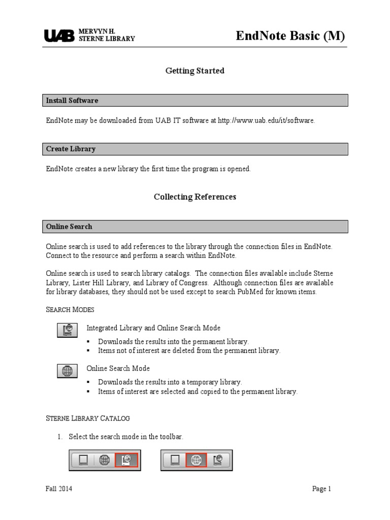 EndNote may be downloaded from UAB IT software at http://www.uab.edu/it/software.