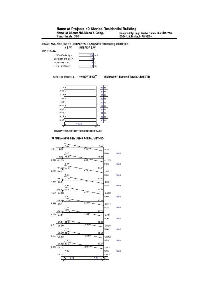 FRAME ANALYSIS DUE TO HORIZONTAL LOAD (WIND PRESSURE):10STORIED