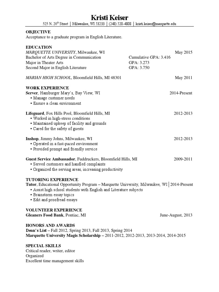 525 N. 20 Street Milwaukee, WI 53233 (248) 520-4808 kristi.keiser@marquette.edu