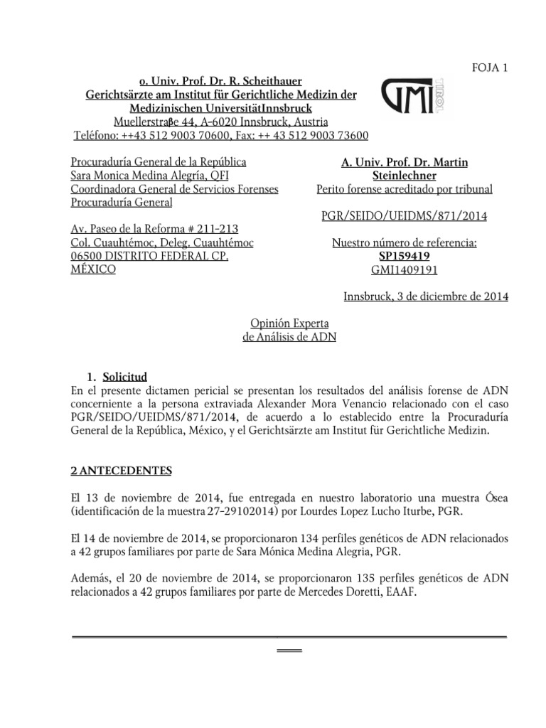 Dictamen de la Universidad de Innsbruck, Austria, sobre hallazgos en #Cocula #Guerrero