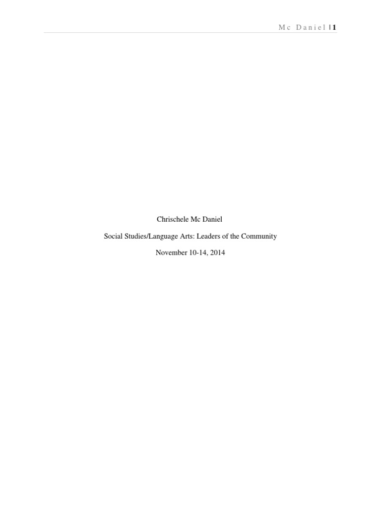 Social Studies/Language Arts: Leaders of the Community