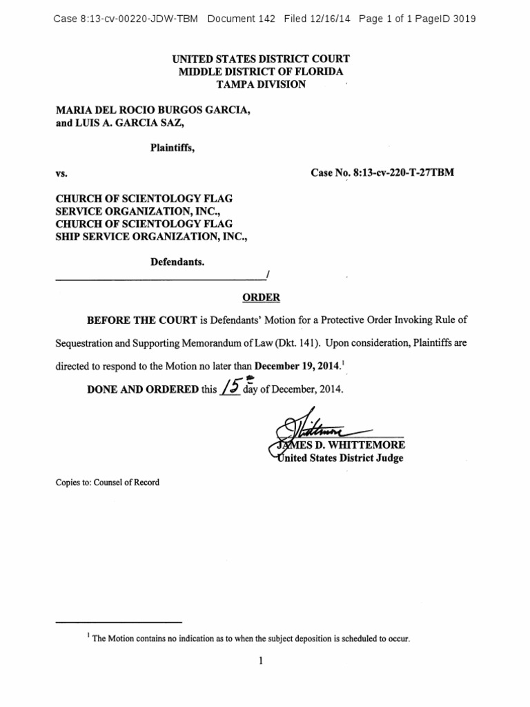 Case 8:13-cv-00220-JDW-TBM Document 142 Filed 12/16/14 Page 1 of 1 PageID 3019