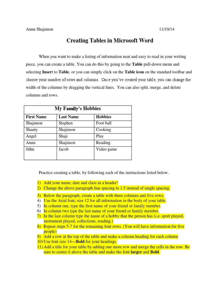 piece, you can create a table. You can do this by going to the Table pull-down menu and