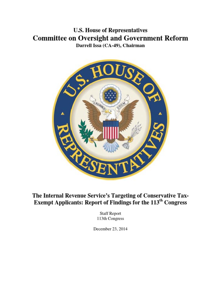 The Internal Revenue Service’s Targeting of Conservative Tax-Exempt Applicants: Report of Findings for the 113