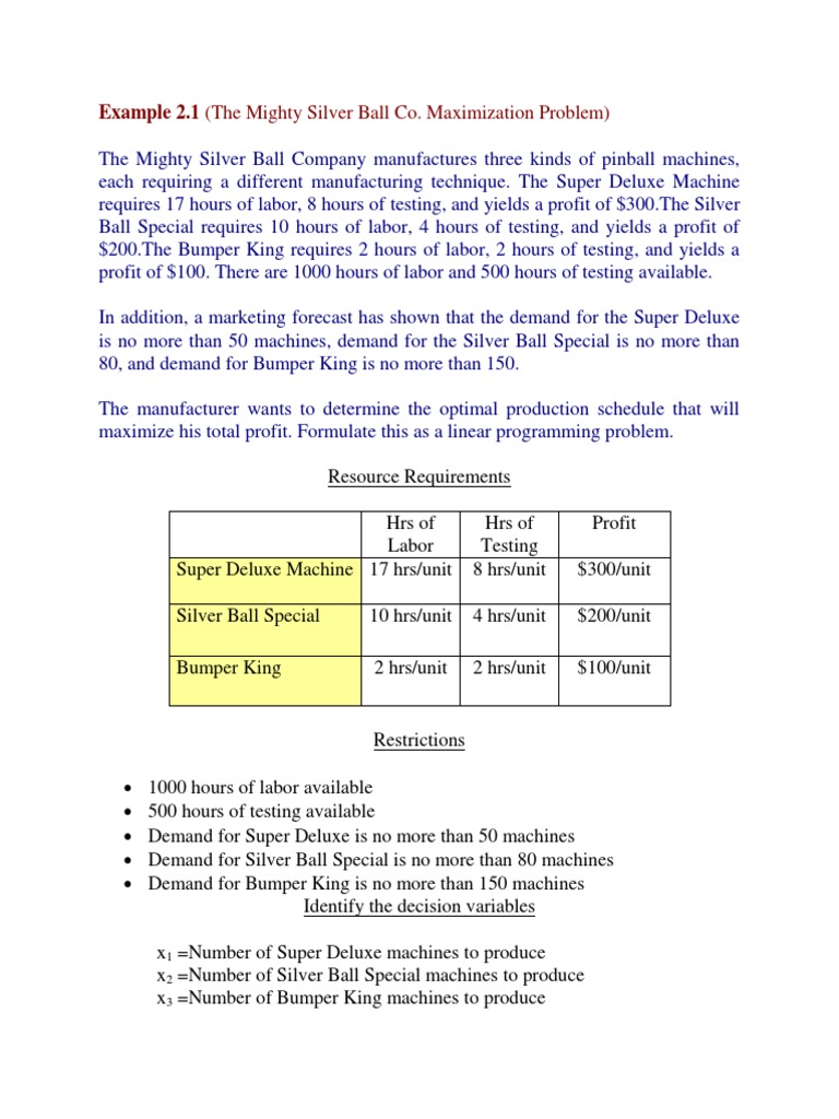profit of $100. There are 1000 hours of labor and 500 hours of testing available.