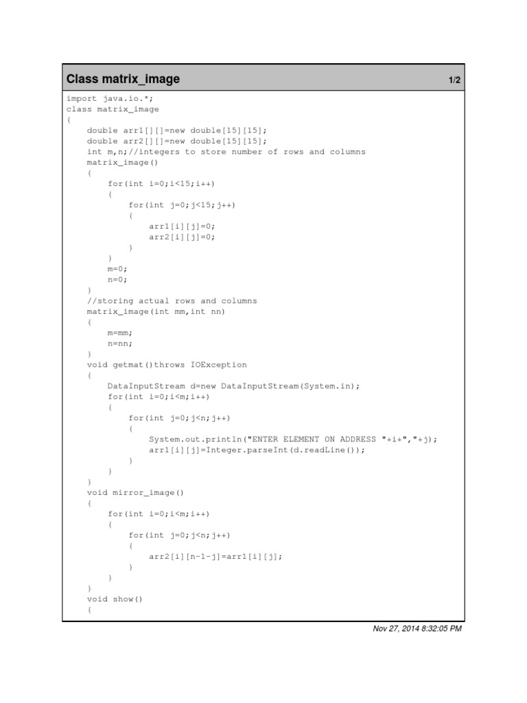 System.out.println("MIRROR IMAGE OF THE MATRIX INPUTED");