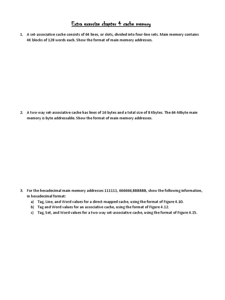 Extra exercise chapter 4 cache memory
