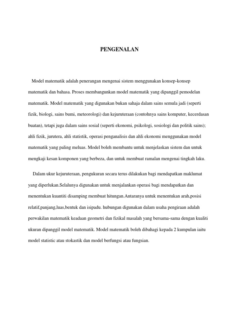 Model matematik sangat berguna dalam menyelesaikan masalah dengan melakukan kiraan