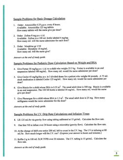 Sample Problems for Critical Care Calculations for L.V. Infusions