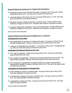 Answers at the end of study guide.Sample Problems for Continuous Heparin Drip Calculations