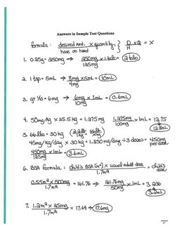 Sample Problems for Pediatric Dose Calculation Based on Weight and BSA