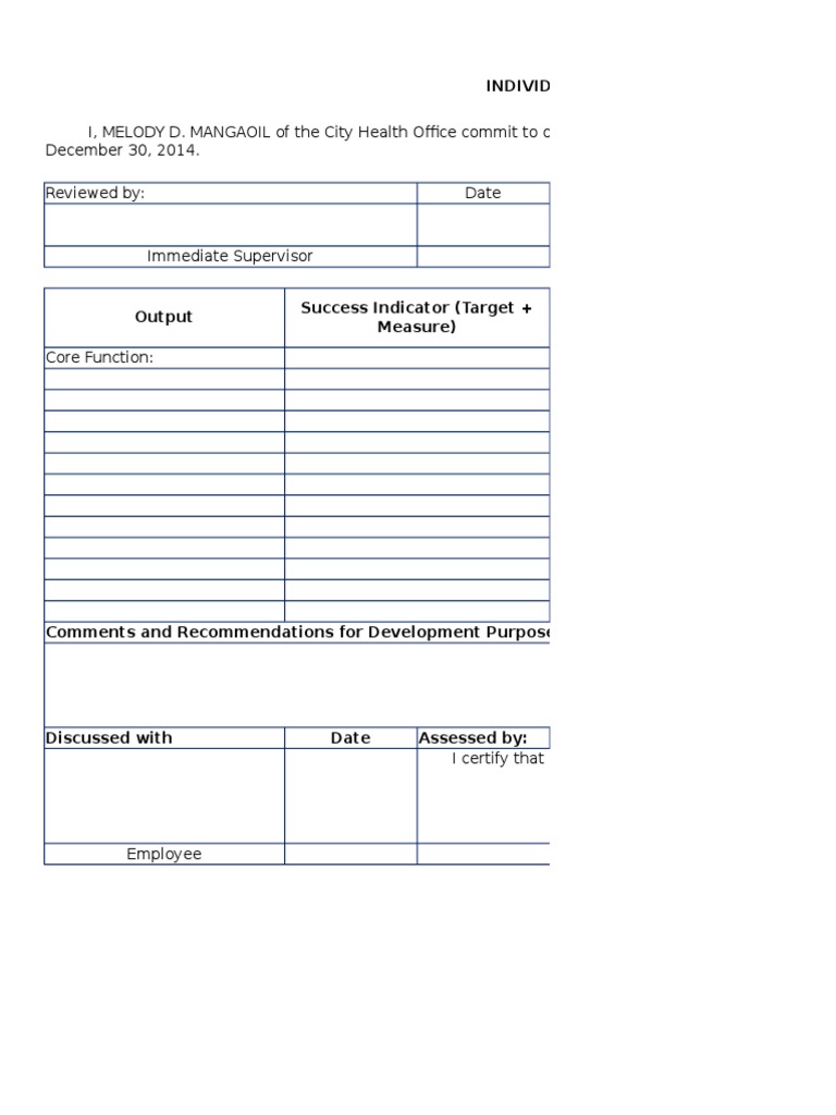 DIVIDUAL PERFORMANCE COMMITMENT AND REVIEW FORM (IPCR)