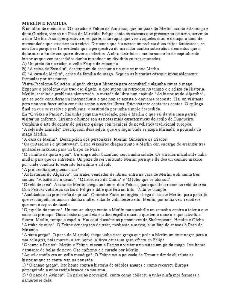 C) "A casa de Merln", censo da familia do mago. Seguen as historias cseque invariablemente