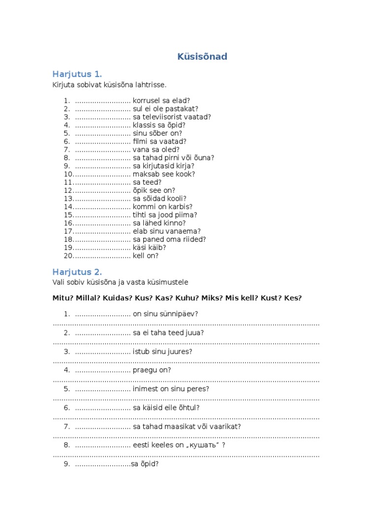 Vali sobiv ksisna ja vasta ksimustele