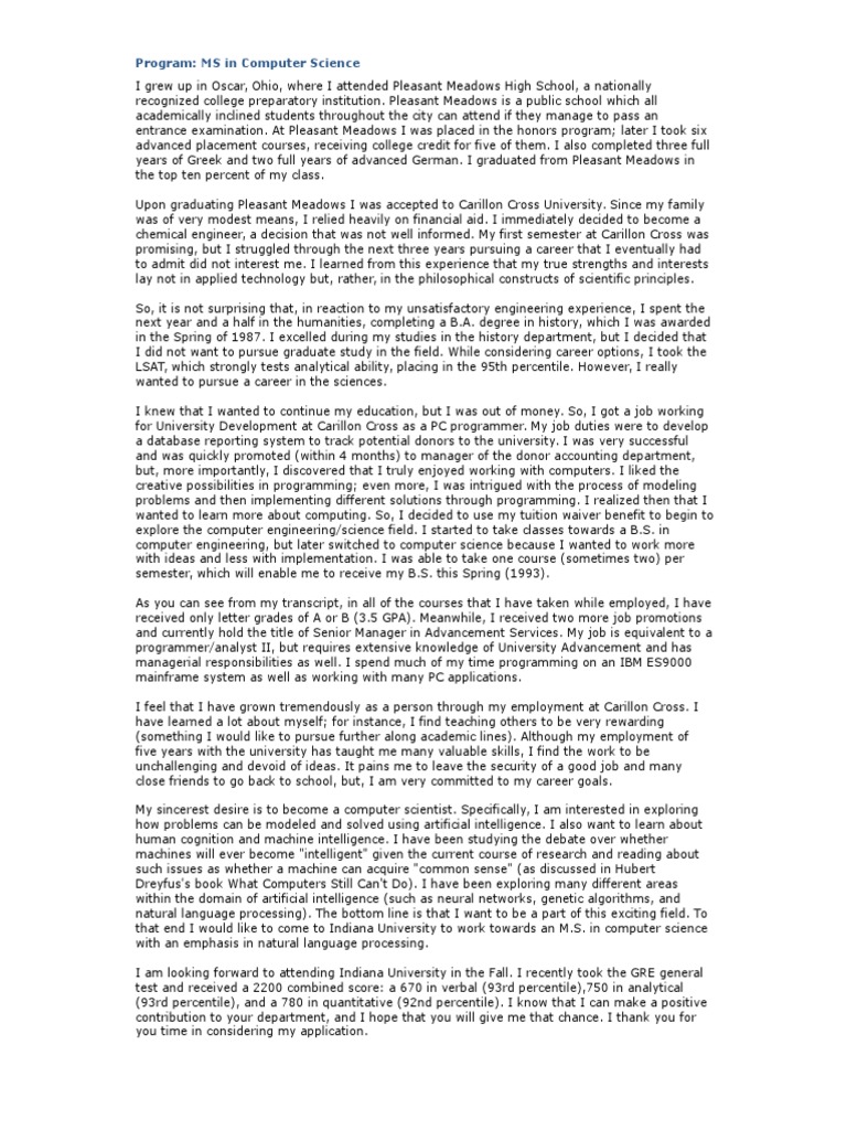 that end I would like to come to Indiana University to work towards an M.S. in computer science