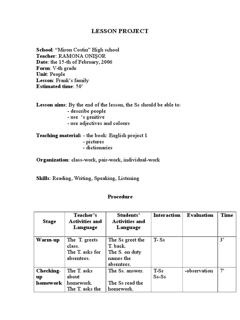 Lesson aims: By the end of the lesson, the Ss should be able to: