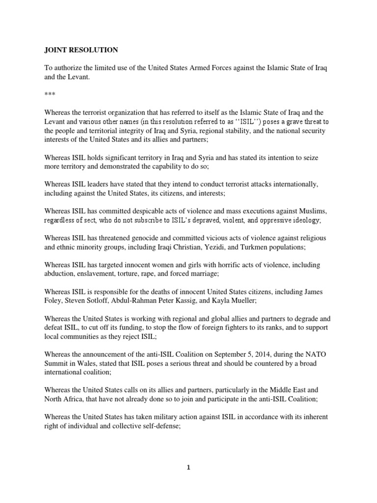 Whereas the United States has taken military action against ISIL in accordance with its inherent
