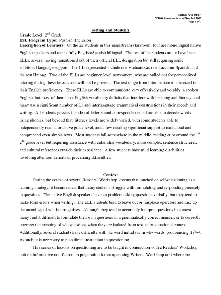 CI 5646 Grammar Lesson Plan, Fall 2009